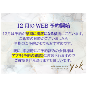 12月のWEB予約を開始しました✨
