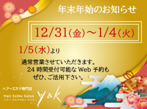 今年も1年間、【ヘアーエステ専門店】yakへお越し頂きまして